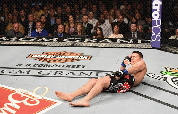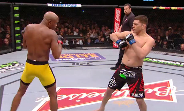 Przez całą niemal walkę Nick Diaz unosił łokieć, strasząc nim Andersona Silvę. Jak wyjaśnił po gali, wpadł na ten pomysł w szatni przed wyjściem do oktagonu.