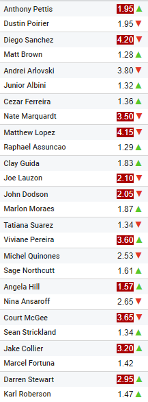 Liczba przy # oznacza miejsce danego zawodnika w Rankingu UFC