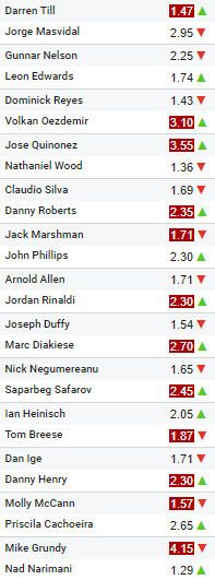 | Till - Masvidal 1.50 - 2.85 | Till |