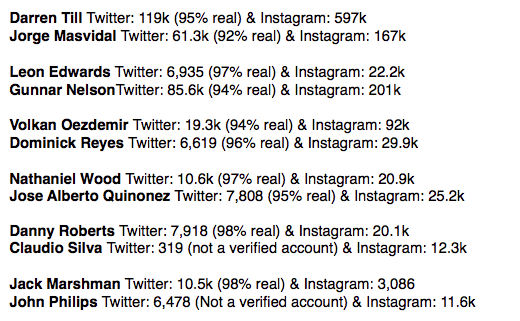 Powrót po co najmniej 9-miesięcznej przerwie: Jorge Masvidal (17 m-cy), Joe Duffy (17), Jose Alberto Quiñones (13), Saparbeg Safarov (13), Priscila Cachoeira (13), Claudio Silva (9), Tom Breese (9), Arnold Allen (9)