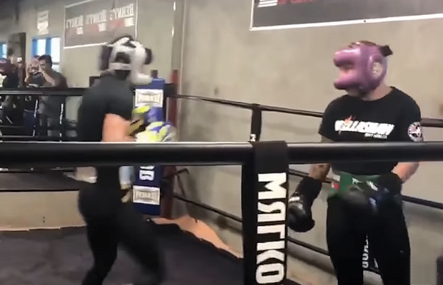 Migawki ze sparingu bokserskiego między dwoma zawodnikami, którzy w swoich dyscyplinach uchodzą…