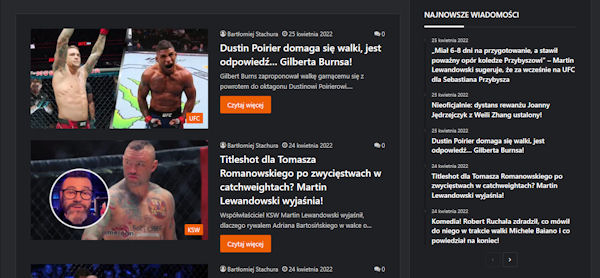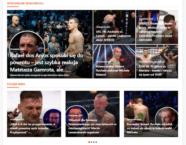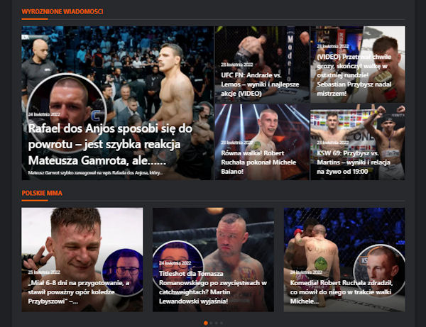 - Polskie MMA – ostatnie wiadomości związane z polskim MMA (można przewijać w bok do kolejnych wiadomości)
