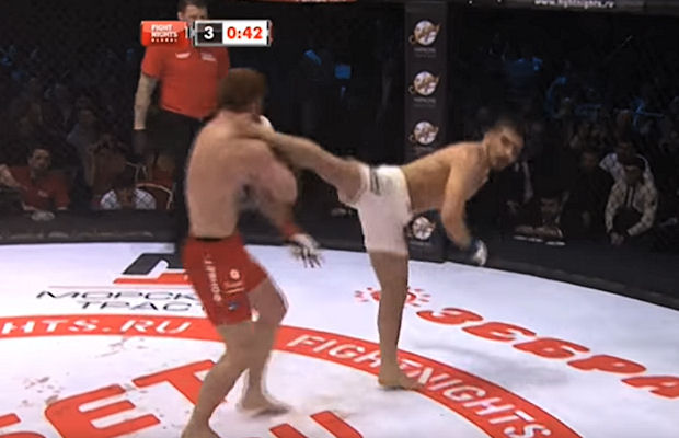 Starcie toczyło się głównie w klinczu, gdzie to Brazylijczyk przeważał, częściej kontrolując akcję i przede wszystkim trafiając częściej. I właśnie w zwarciu pod siatką rozstrzygnął pojedynek – tam bowiem na początku drugiej rundy wyprowadził krótki cios, po którym prawe oko Rosjanina zaczęło szybko puchnąć.